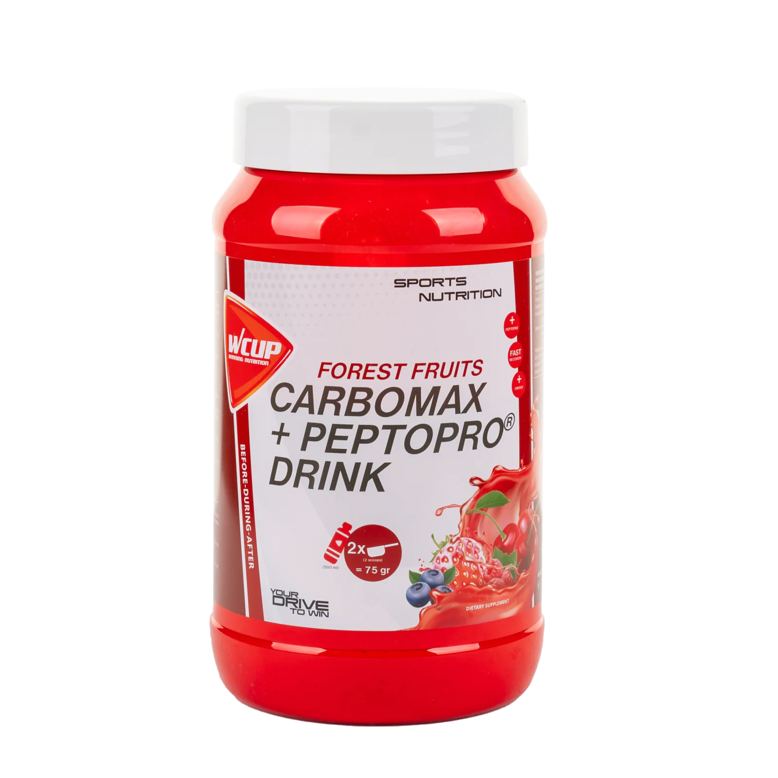 WCUP Carbomax contient une combinaison de glucides et de PeptoPro® qui reconstituent rapidement les réserves de glycogène et préparent ainsi le corps à un exercice intensif.